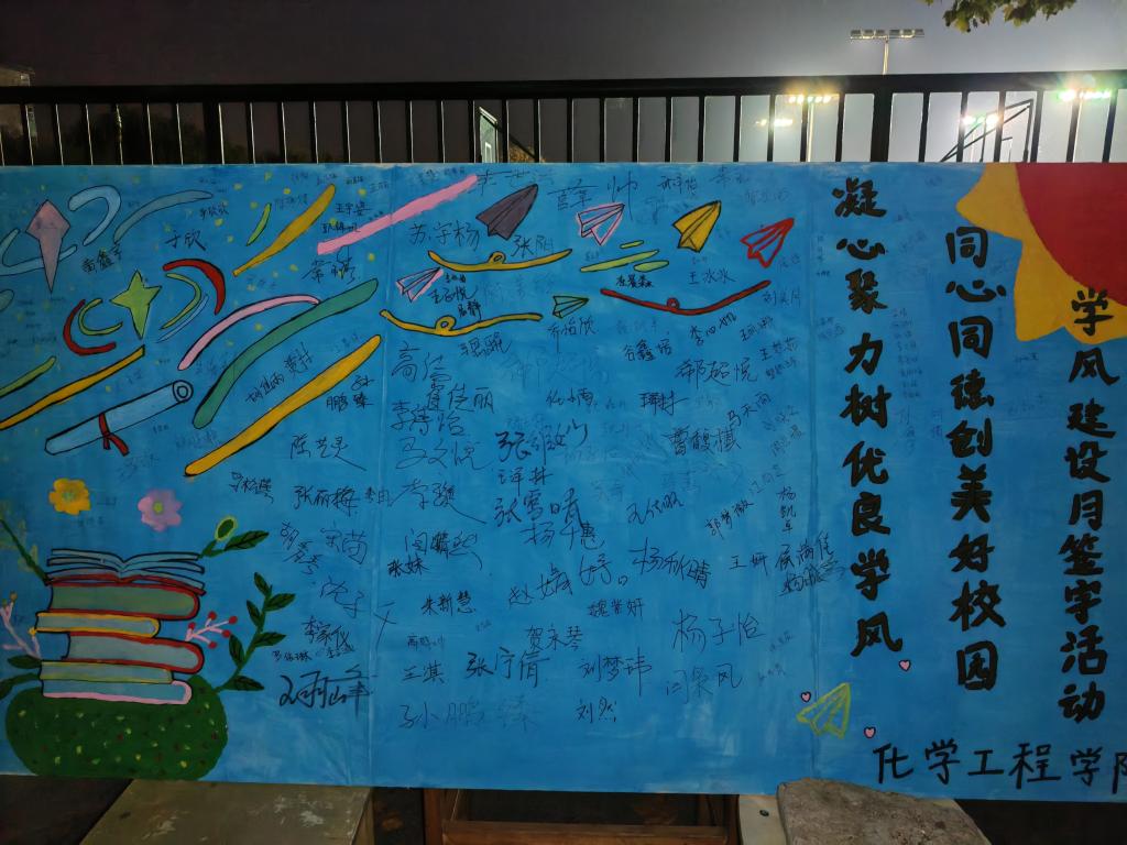 签名现场气氛活跃,同学们在展牌上认真地签下了自己的名字,将拼搏奋进的热情在字里行间传递并与签名展板合影留念。工作人员与同学们分享了学习心得,希望大家端正学习态度,树立学风建设从我做起的意识,让学风建设内涵内化于心、外化于行。同学们表示将会以饱满的热情通过自身行为助力学校优良学风建设。